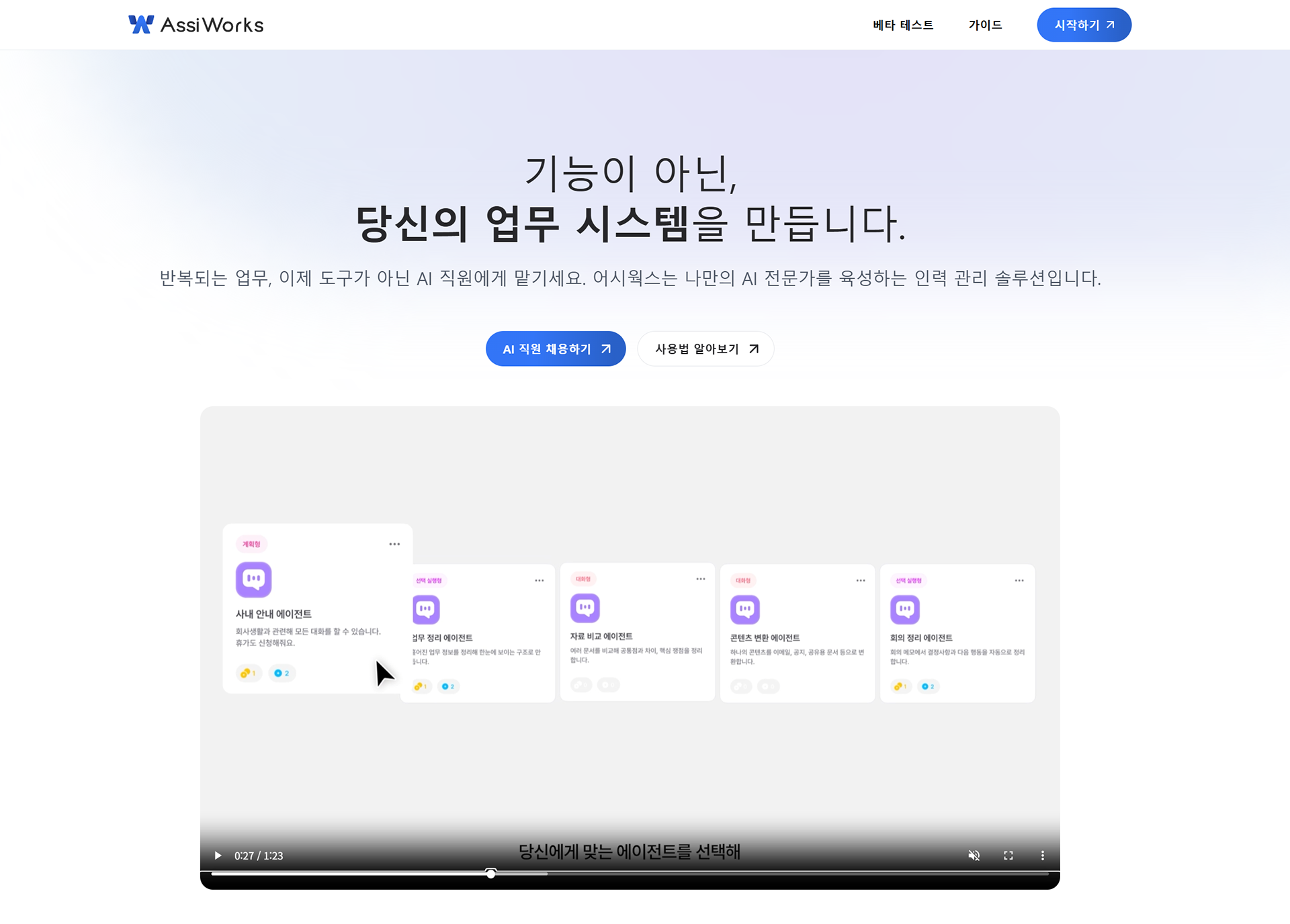 자율 에이전트 Assi Works 의 기능 소개를 위한